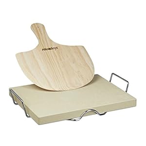 Relaxdays Pizzastein Set 3 cm Stärke mit Metallhalter und Pizzaschieber aus Holz HBT: 7 x 43 x 31,5 cm rechteckiger Brotbackstein für Pizza und Flammkuchen mit Pizzaschaufel für Pizzaofen, natur