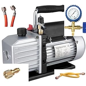 Gebäudetechnik 24 Fachhandel für Haus- und Gebäudetechnik Kälte – Klima – Set TÜV Vakuumpumpe + Monteurhilfe + Schläuche, 51-57lt, R134a R407c R410a