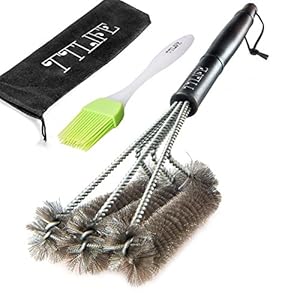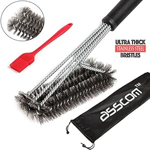 BBQ Grill-Bürste von asscom TM – 18 „- 3 Edelstahl-Bürsten in 1 und einen kleinen 100% kleine Silikonpinsel – Best Barbecue-Reiniger Werkzeuge Zubehör – Outdoor-Küche Drahtborsten Reinigung Grates Parts Set Weber Holzkohle, Charbroil, Gas, elektrischer Handgriff, Porzellan, Infrarot-Grills