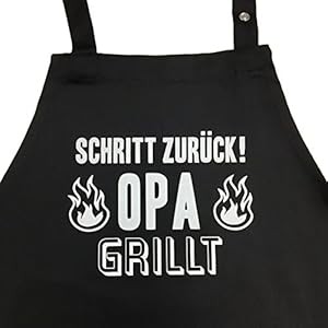 Schritt zurück! Opa grillt – Grillschürze, Kochschürze mit verstellbarem Nackenband und Seitentasche