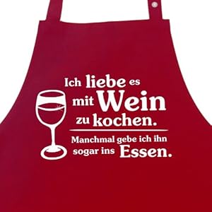 Ich liebe es mit Wein zu kochen. Manchmal gebe ich ihn sogar ins Essen. Kochschürze, Latzschürze mit aufgesetzter Seitentasche und verstellbarem Nackenband Geschenk Weinliebhaber