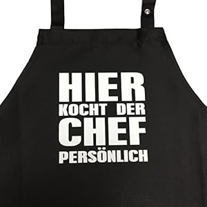 Hier kocht der Chef persoenlich – Kochschuerze, Grillschuerze mit verstellbarem Nackenband und Seitentasche