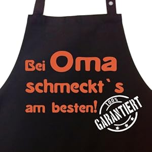 Bei OMA schmeckt`s am besten! Garantiert! – Kochschürze, Latzschürze mit verstellbarem Nackenband und Seitentasche – Die Geschenkidee!