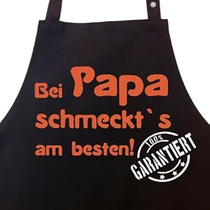 Bei PAPA schmeckt`s am besten! Garantiert! – Kochschürze, Latzschürze mit verstellbarem Nackenband und Seitentasche – Geschenk Papa Vater Mann