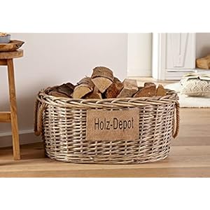 Aufbewahrungskorb „Holz-Depot“ aus Weide im Shabby Look, Feuerholzkorb, Brennholzkorb
