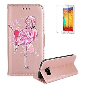 Glitzer Hülle für Samsung Galaxy S6,Flip Brieftasche Handyhülle für Samsung Galaxy S6,Funyye Luxuriös Ziemlich Diamant Flamingo Muster Bling Magnetverschluß Handytasche Multifunktion Stoßdämpfende Tasche Rutschfest Kratzfest Backcover mit Kartenhalter Slot und Standfunktion für Samsung Galaxy S6 + 1 x Frei Displayschutzfolie
