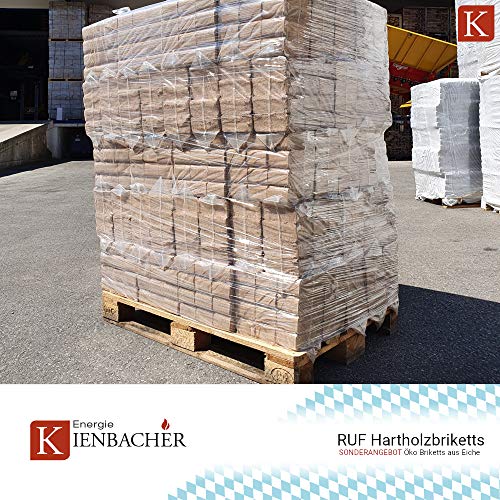 1000kg Holzbriketts RUF Hartholz Briketts Kamin Ofen Brikett Brennholz Heizbrikett aus Reiner Eiche 100 x 10kg/ 1000kg Palette RUF Brikett Eckig