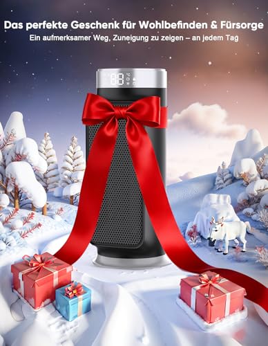 Der 1800W PTC Heizlüfter mit Fernbedienung sorgt für schnelle Wärme in Innenräumen – ideal für Büro, Zuhause oder Arbeitsbereiche. Die Nutromo Dual-Fan-Technologie liefert zielgerichtete Wärme dort, wo Sie sie benötigen, sei es unter dem Schreibtisch oder im gesamten Raum. Mit einer Leistung von 1800W und einem umfassenden 360°-Sicherheitssystem genießen Sie sorgenfreien Betrieb: Kipp- und Überhitzungsschutz, ein flammbeschützendes Gehäuse und ein sicherer Stecker. Der ECO-Modus mischt Energieeffizienz mit komfortabler Wärme, während der 1°F-gestufte Thermostat (41–95°F) eine präzise Temperaturregelung ermöglicht. Die 75°-Oszillation sorgt für gleichmäßige Wärmeverteilung im ganzen Raum, vom Schlafzimmer bis zur Garage. Ein leiser Betrieb dank bürstenlosem DC-Motor und aerodynamischem Lüfterdesign (ca. 25 dB) macht den Heizlüfter besonders geeignet für konzentriertes Arbeiten oder ruhigen Schlaf. Die integrierte Fernbedienung ermöglicht die komfortable Steuerung von der Couch oder vom Bett aus, sodass Sie Ihre Wohlfühltemperatur ganz unkompliziert einstellen können. Zusätzlich überzeugt das Gerät durch seine robuste Bauweise und verlässliche Sicherheit – für den Tag- und Nachtbetrieb, auch bei Kindern und Haustieren.