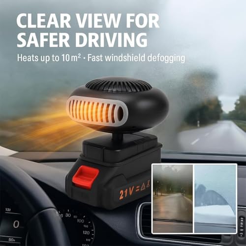 Kompakte, batteriebetriebene Innenraumheizung mit 1500 mAh Akku, bis zu 15 Minuten kabelfreie Wärme. 360° Drehbasis, Anti-Kipp-Schutz und schnelle Nebelentfernung bis 10 m² – ideal für Auto, Büro und Camping.