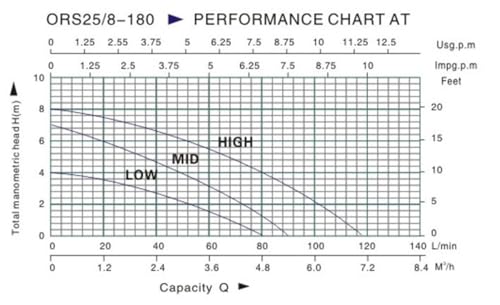Max. Förderhöhe 8 m, Fördermenge bis 110 l/min, Einbaulänge 180 mm, Anschluss 1,5 Zoll. Überwurfmuttern 1 Zoll IG. Keramiklager, manuelle 3-Stufen-Drehzahlschaltung (135/190/245 W).