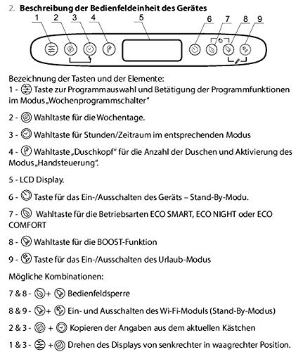 Der Tesy GCR E31 ECW ist ein flacher, wandhängender 50-Liter-Warmwasserspeicher mit einer kompakten Bauform von nur 280 mm Tiefe. Er bietet zwei getrennte Behältersysteme mit jeweils eigenem Heizstab, was eine schnelle Wassererwärmung ermöglicht und gegenüber herkömmlichen Speichern eine deutlich höhere Zapfleistung liefert. Die integrierte WiFi-App-Steuerung sorgt für komfortable Fernbedienung und individuelle Heizzeiten, unterstützt durch ein benutzerfreundliches LCD-Bedienfeld. Die Anlage lässt sich besonders platzsparend installieren – ideal für Küchenzeilen, winkelige Nischen oder enge Schränke. Zu den weiteren Vorteilen gehören eine vormontierte MagnesiumschutzAnode, ein Sicherheitsventil, eine Wandhalterung direkt am Gerät sowie eine Temperaturanzeige am Bedienteil. Die effiziente ECO-Smart-Funktion reduziert zudem den Stromverbrauch, ohne Leistungseinbußen bei der Warmwasserbereitung. Heizleistung 2,2 kW, Energieeffizienzklasse B. Jahresverbrauch ca. 1.241 kWh, Aufheizung von 15 °C auf 60 °C dauert etwa 1 Stunde 20 Minuten, Duschzeit für zwei Personen ca. 13 Minuten. Maße (HxBxT): 709 x 490 x 280 mm; Gewicht: 21 kg. Einfache Montage, Sicherheits- und Montageset inklusive.