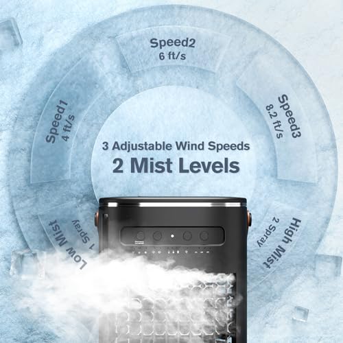 AIRTHRYL Verdunstungsluftkühler, tragbare AC- Einheit für Schlafzimmer, Zimmer, Büro, Schreibtisch, 7 Farblichter, persönliche Mini- Klimaanlage