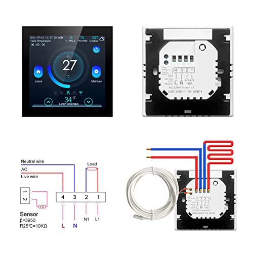 AVATTO WT160: WiFi-Thermostat mit farbigem Touch-Display, internem/external Sensor, App-Steuerung und Sprachassistenten. 5+2/6+1/7 Tage, 6 Zeitabschnitte/Tag, Kindersicherung.