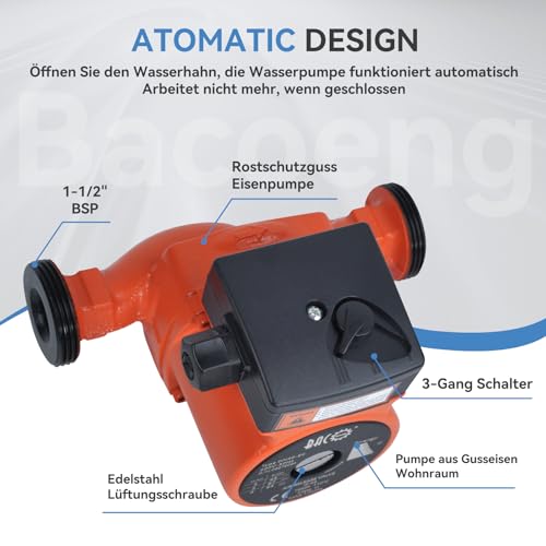 BACOENG Heizungspumpe Umwälzpumpe RS 25/ 6- 180, Heizung Heizungspumpen 230V/ 50Hz Orange