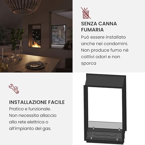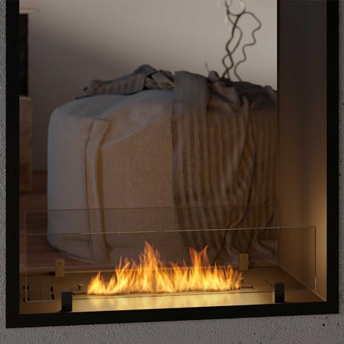 Bioethanol-Kamin für Einbau-Kamin, doppelseitig schwarz, aus Stahl, 2 Seiten, vertikal, 2SIDE SLIM VERT