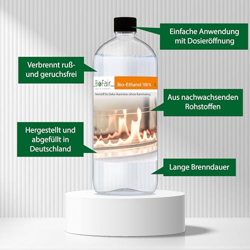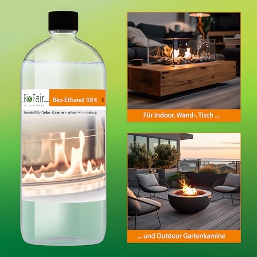 BioFair Bioethanol – 100% Reiner Brennstoff – Bioethanol für Bioethanolkamin, Ethanol Tischkamin, Wandkamin Indoor