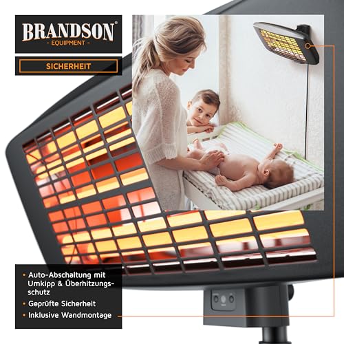 Brandson- Heizstrahler mit Fernbedienung Outdoor Indoor- Elektro Infrarot Terrassenheizstrahler- 3 Leistungsstufen Heizelemente- LED Power Indikator- Wandhalterung- Balkon Garten Terrasse