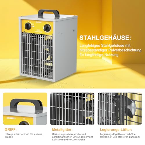 DAHTEC Elektroheizer Heizlüfter Große Räume Bauheizer 5000 Watt Elektro Heizstrahler mit Thermostat Elektrisch Heizgerät mit 3 Heizstufen Heizgebläse für Garage, Baustelle