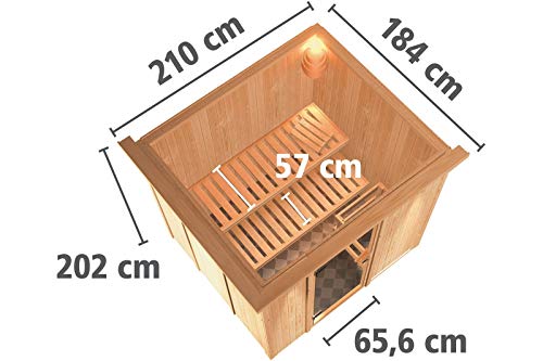 Daria- Karibu Sauna Plug & Play SPARSET inkl. 3, 6 kW Ofen, Dachkranz, Leuchte, Zubehör- Set