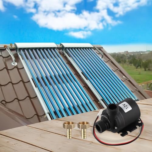 DC 12 V 24 V Solar- Warmwasser- Umwälzpumpen- Set, bürstenlos, geräuscharm, 8 l/ min Durchfluss, 1/ 2 für NPT für BSP- Gewinde für Heizungskühlsysteme, Schwarz (12 V)
