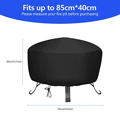 FENSHIJIE Feuerstelle Abdeckung, Feuerstellenabdeckungen Rund mit Kordelzug, Feuerstelle für Abdeckung Wasserdicht Oxford- Stoff, Abdeckung für Gartenmöbel, Schutzhülle für Herd (Dia.85 x 40 cm)
