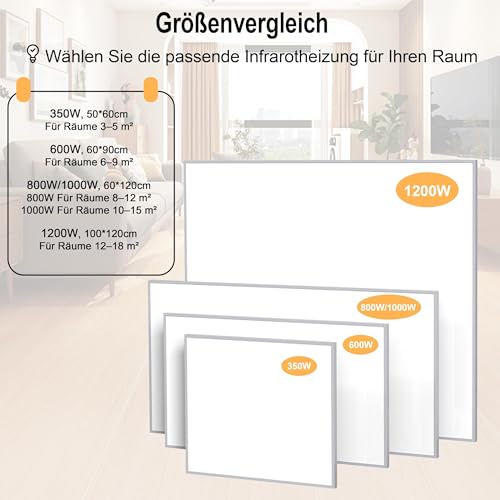 Die FrauSonne Infrarotheizung Standgerät mit 350 W Leistung bietet eine kompakte, energiesparende Lösung für Innenräume und Badezimmer. Ausgestattet mit einem Smart Thermostat, App-Steuerung und programmierbarer Zeitschaltuhr lässt sich Temperatur präzise einstellen (±0,5 °C) und Energieverschwendung gezielt vermeiden. Die Graphen-Heiztechnologie sorgt für schnelle Wärme in nur wenigen Minuten, ohne Luftwirbel zu erzeugen, was besonders für Hausstauballergiker vorteilhaft ist und Trockenluft reduziert. Die Heizung kann sowohl als Wand- oder Deckeninstallation genutzt werden, alternativ stehen mobile Standfüße für flexibility zur Verfügung, sodass sich Räume, Flure, Büros oder Bäder problemlos temperieren lassen. Zur Auswahl stehen verschiedene Leistungsstufen, abgestimmt auf die Isolierung und den zu beheizenden Bereich: 350 W (3–5 m²), 600 W (6–9 m²), 800 W (8–12 m²), 1000 W (10–15 m²) und 1200 W (12–18 m²). Die Montage erfolgt inklusive Montageset, 1,92 m Sicherheitskabel, Quadratischen Aluminiumrahmen und feuerfestem Gipsrücken; die Standfüße ermöglichen den mobilen Einsatz. Für maximale Sicherheit sorgt der TÜV-zertifizierte Überhitzungsschutz, der sich bei 115–120 °C automatisch abschaltet. Die Infrarotheizung bietet eine zuverlässige, schonende Wärmequelle mit 20 Jahren Herstellergarantie.