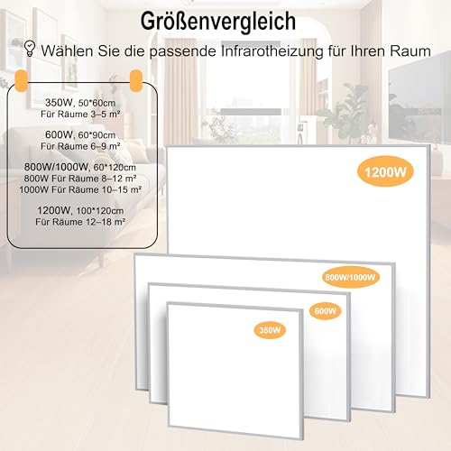 Energiesparende Infrarotheizung 800W mit schneller Aufheizung und TÜV-Überhitzungsschutz. Wandmontage, platzsparend, ideal für Bad, Schlafzimmer, Büro – inkl. Montageset und 10 Jahre Garantie.