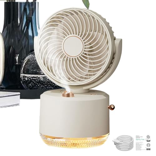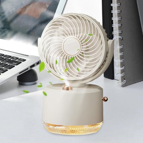 Kompakter, leiser Tragbarer Lüfter mit USB-Lademodi, verteilendem Luftauslass, Nachtlicht und integrierter Sprühfunktion für flexible Kühlung zu Hause, im Büro oder unterwegs.