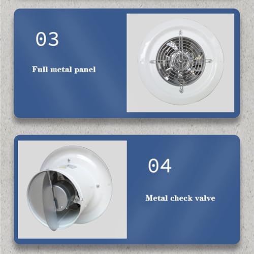 GLETSF Ventilator aus Metall, 15,2 cm (6 Zoll) und 20,3 cm (8 Zoll) bieten leistungsstarken Luftstrom für Küche, Bad und Arbeitsbereiche. Der Doppellagermotor mit reinem Kupferdraht sorgt für niedrigen Stromverbrauch, schnelle Wärmeableitung und stabile Betriebstemperaturen, wodurch sich der Ventilator sowohl privat als auch industriell einsetzen lässt. Die sieben Edelstahlflügel erzeugen eine kraftvolle Luftbewegung, ohne das Umfeld zu stark zu stören, und erreichen dabei ein leises Betriebsgeräusch von rund 40 dB beim 6-Zoll-Modell. Zur flexiblen Anpassung an Räume unterschiedlicher Größe stehen zwei Varianten zur Verfügung: 15,2 cm mit 40 W und 500 m³/h sowie 20,3 cm mit 60 W und 1050 m³/h. Die Ganzmetallkonstruktion bietet Haltbarkeit, Verschleißfestigkeit und Rostbeständigkeit – ideal für feuchte Umgebungen wie Küchen und Bäder. Ein Metallschlussventil unterstützt zusätzlich die Geruchsabdeckung und schützt vor Rückfluss, sodass frische Luft in Ihrem Raum bleibt.