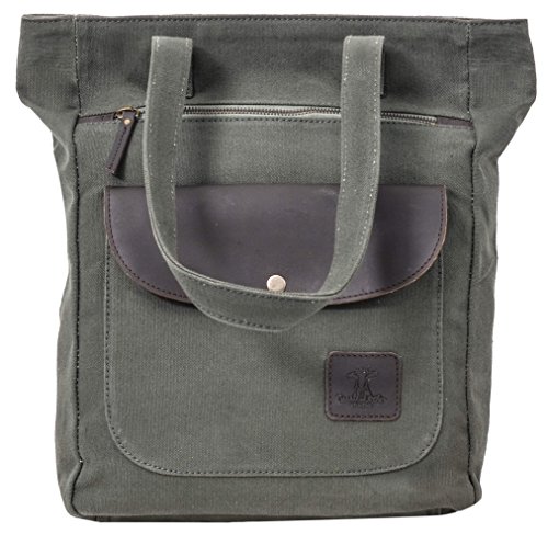 Gusti Leder studio „Aria“ Shoppertasche Shopper mit Rucksackfunktion Henkeltasche Damenhandtasche Freizeittasche Schultertasche Handtasche Rucksack Damentasche Canvas Büffelleder Grün 2H65- 26- 57