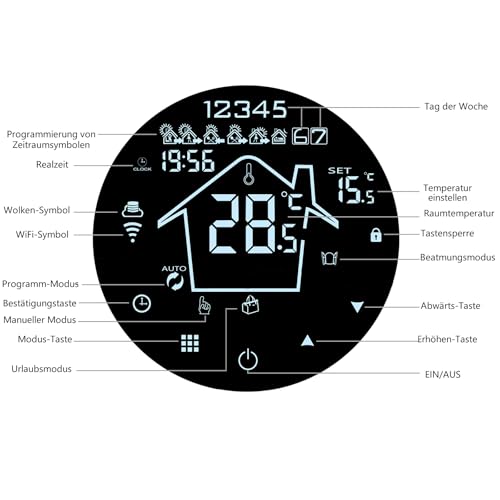 Könighaus Smart Thermostat- App- Steuerung über iOS & Android- Temperatur & Programmierung per Handy App- Fenster- offen- Erkennung- kompatibel mit Könighaus Smart Home