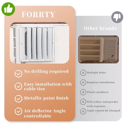 Einstellbarer Windrichtungsabweiser aus Metall mit Pulverbeschichtung für Außenklimaanlagen. Verhindert direktes Blasen, leicht zu installieren ohne Bohren, inklusive Zubehör und Handschuhen. Mehrere Größen erhältlich, kompatibel mit den meisten Mini-Split-, K- und Zentralluft-Außenheiten.