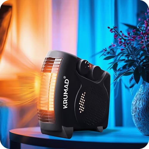 KRUMAD Heizlüfter 2000 W, Elektrische Heizung mit Thermostat & 2 Heizstufen, Energiesparender Elektroheizkörper mit Überhitzungsschutz & Tragegriff, Kompakter Heizstrahler