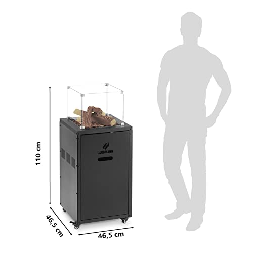 LANDMANN Gas- Feuerstelle | Outdoor | Terrassenfeuer mit Elektronische Zündung | 4 Rollen | Pulverbeschichtetes Stahlgehäuse | Dekorative Lavasteine und Holzscheite | Maße 46, 5 x 46, 5 x 110 cm
