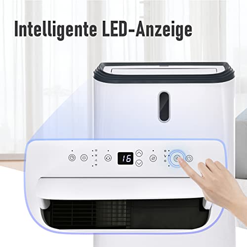 Kompaktes mobiles Klimagerät mit 12000 Btu/h, 4-in-1-Funktionen (Kühlen, Lüften, Trocknen, Schlafen), App- und Fernbedienung, Abluftfunktion, Energieeffizienzklasse A, für Räume bis 100 m³.