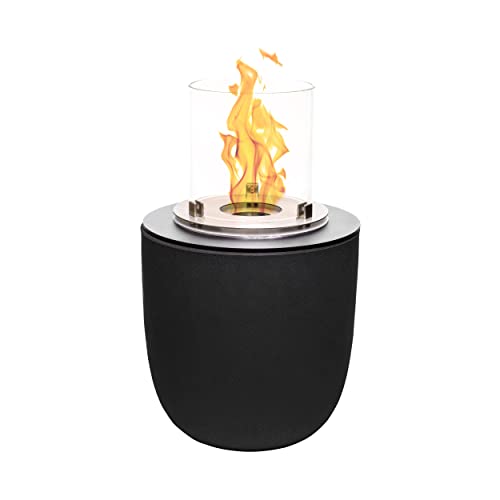 DESIGNERSTÜCK – dekorative Bio Alkohol-Feuerstelle per echten Flammen statt den überdachten Außenbereich. Der hochwertige Körper ist in schwarz, schwarz-bieder (anthrazit), bieder, weiß-bieder oder weiß erhältlich.
