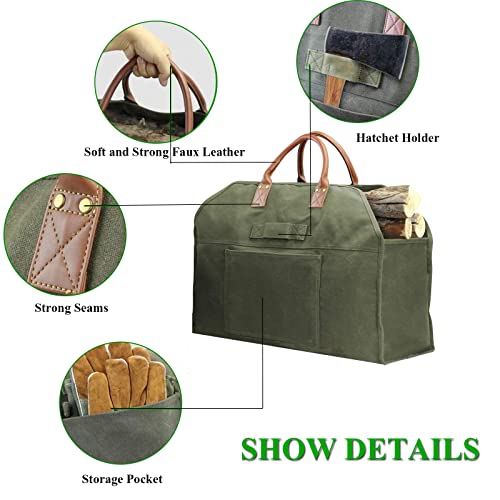 Vielseitige Leinwandprotokolltasche: Diese Blockträgertasche ist geräumig in Maßen, um große Mengen Holz zu transportieren oder zu ablegen, Gaststätte zu schwer zu werden.Es ist vielseitig ansonsten entsprechend zugunsten manche Anwendungen als Herde, Lagerfeuer, Camping, Gartenarbeit ansonsten Lagerhaus.