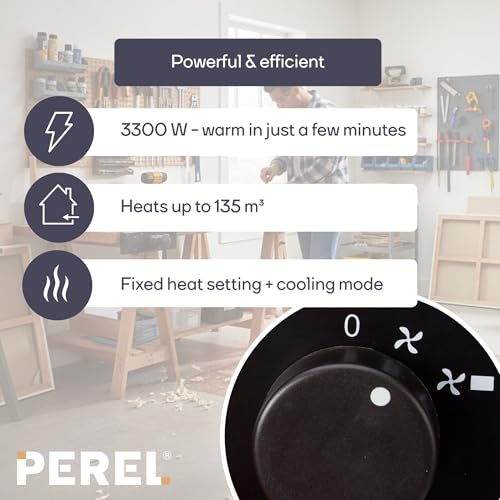 Perel Elektrischer Heizlüfter 3300W mit Thermostat und Kühlfunktion, IP24 Überhitzungsschutz, kompakter tragbarer Heizstrahler für Werkstatt, Garage oder Hobbyraum