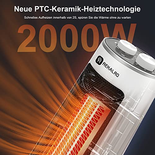 REKALRO Keramik Heizlüfter Energiesparend, 2000W PTC-Keramikheizung mit Thermostat, 70° Oszillierende Elektroheizung, Überhitzungs und Kippschutz, 3 Modi Kleine Heizlüfter für Bad, Schlafzimmer, Büro