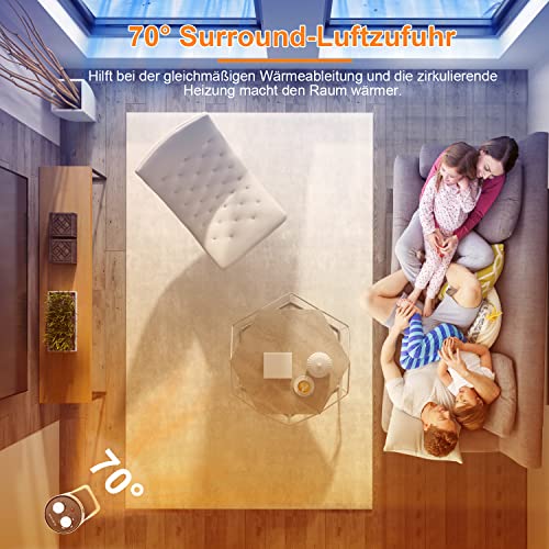 🔥【Mehrfachschutz】 Diese stromheizung besteht jeder flammhemmendem Antiblockiersystem-Material, um jegliche Brandgefahr zu verhüten. Wenn die mobile Heizung ungewollt umgestoßen wird, schaltet das Überrollschutzsystem das Antrieb gleich darauf ab, auch das Antrieb schaltet sich selbstbeweglich ab, wenn die Heizungstemperatur zu deutlich ist.