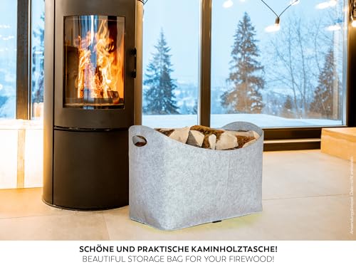 Rubberneck Kaminholztasche XL aus Filz für Holz, Zeitungen, Kaminholz- Filztasche Maße 54 x 30 x 39 cm (Grau)