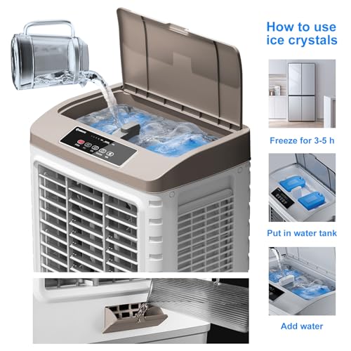 Tragbarer Verdunstungsluftkühler mit 13, 2 Gallen- Tank, Fernbedienung, 120° Oszillation, 3 Lüftergeschwindigkeiten, ideal für den Innen- und Außenbereich