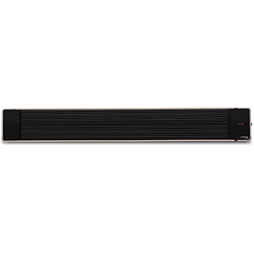 Infrarot-Heizstrahler mit 2400 W, drei Heizstufen, IP55-Schutz und praktischer IR-Fernbedienung. Robustes Aluminiumgehäuse, Wand- oder Deckenmontage inklusive Halterungen.