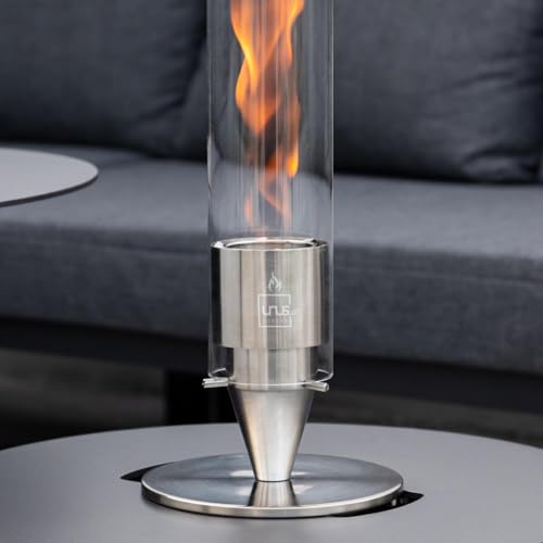 UNUS Tischkamin Komplettset inklusive Erdspieß und Nachfüllbehälter Gartenfackel Tischfeuer Terrassenfeuer Windlicht Edelstahl Glaszylinder Ethanol