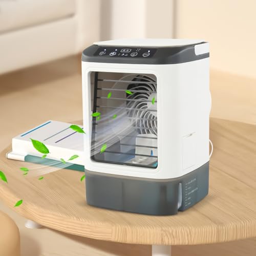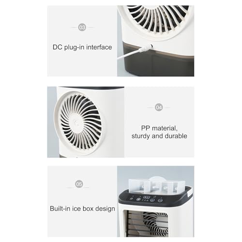 Der Ventilator für Klimaanlage vereint kompakte Tragbarkeit mit vielseitigen Funktionen und eignet sich ideal für Zimmer, Schlafzimmer, Wohnmobile, Reisen, Camping, Garage oder Werkstatt. Dank USB-Ladefunktion lässt er sich flexibel an verschiedenen Orten betreiben, ohne festen Stromanschluss. Drei Geschwindigkeiten ermöglichen eine individuelle Luftzirkulation, während der integrierte Luftbefeuchter sowie der Lüftermodus für angenehme Luftfeuchtigkeit sorgen. Das hochwertige PP-Material sorgt für lange Haltbarkeit und Formstabilität auch bei häufiger Nutzung. Zudem ergänzt ein mehrfarbiges Nachtlicht bzw. ein einstellbares Ambiente-Licht den Raum stilvoll und praktisch – ideal als Arbeits- oder Schreibtisch-Accessoire.