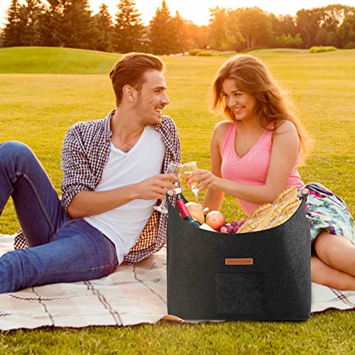 XL Brennholzkorb Filzkorb extra dicker Filz und verstärkter Griff | Faltbarer Holzkorb Filztasche als Aufbewahrungskorb für Einkauf, Holz, Zeitung oder Brennholz (Dunkelgrau)