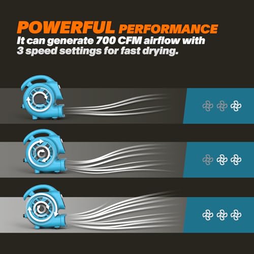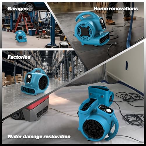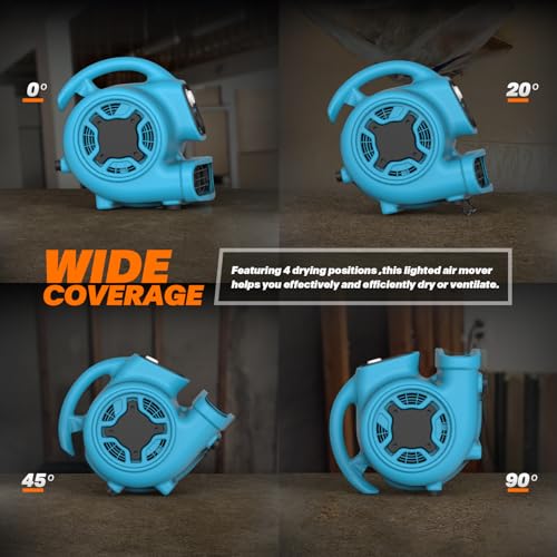 XPower P- 230L Mighty Centrifugal Air Mover Carpet Dryer Floor Fan Blower Stackable Daisy Chain with Light for Water Damage Restoration Janitorial Plumbing Home Use