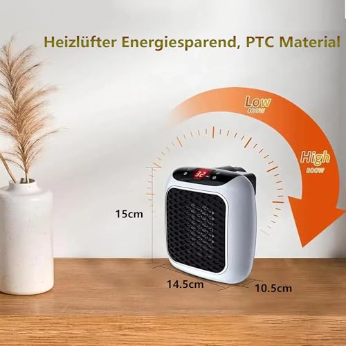 Der ZUSKYZU Steckdosen-Heizlüfter bietet schnelle, gezielte Wärme direkt dort, wo sie gebraucht wird. Mit 800 W Leistung erhitzt sich die Keramikführung rasch und sorgt für behagliche Temperaturen in kleinen Räumen wie Schlafzimmern, Hotels oder Fahrzeugen. Die kompakte Mini-Heizung lässt sich über Fernbedienung oder Touch-Bedienung steuern und verfügt über eine 1–12 Stunden Timerfunktion, sodass sich Temperatur- und Zeiteinstellungen übersichtlich auf dem Display ablesen lassen. Der drehbare Netzstecker ermöglicht eine flexible Ausrichtung der Heizeinheit unabhängig von der Steckdosenposition. Im Winter lässt sich der Thermostat flexibel zwischen 15 und 32 °C einstellen, sodass Sie schnell Wärme erzielen, ohne den Raum zu überheizen. Die PTC-Keramik heizt schneller als herkömmliche Modelle, und Sicherheitsfeatures wie der Bimetall-Schutz sowie automatische Abschaltung bei 65 °C sorgen für zuverlässigen Schutz. Die kompakte Bauweise macht das Gerät ideal für den Einsatz in der Nähe von Personen oder in kleinen Räumen – beispielsweise im Hotelzimmer, Gästebad oder Wohnmobil – ohne großen Platzbedarf.